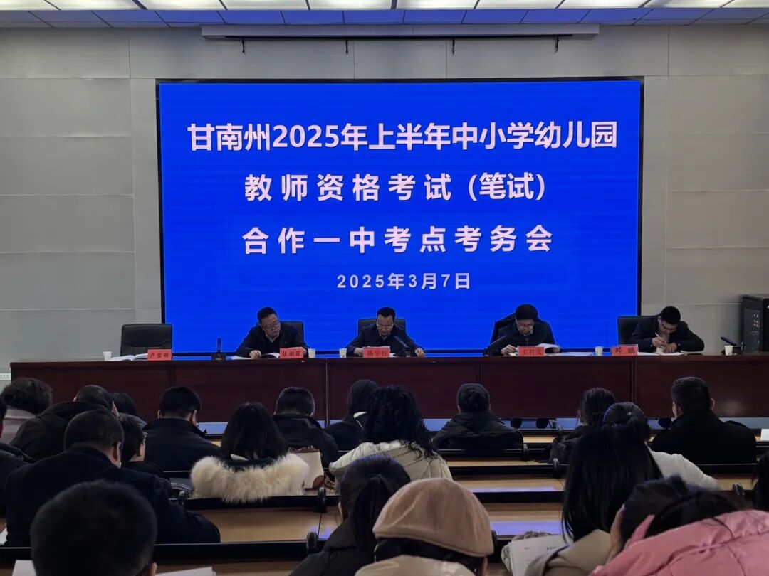 2025年3月8日,开年第一考——全国2025年上半年中小学幼儿园教师资格考试(笔试)甘南考区考试顺利结束。本次考试报考考生4384名,共有7915科次,设4个考点,124个考场,4个备用考场,抽调考务工作人员134名,抽调主、监考230人。各有关单位主动担当、齐心协力、严密组考,实现了“零失误、零差错、零违纪”的目标,考试工作起步良好、开局顺利。
